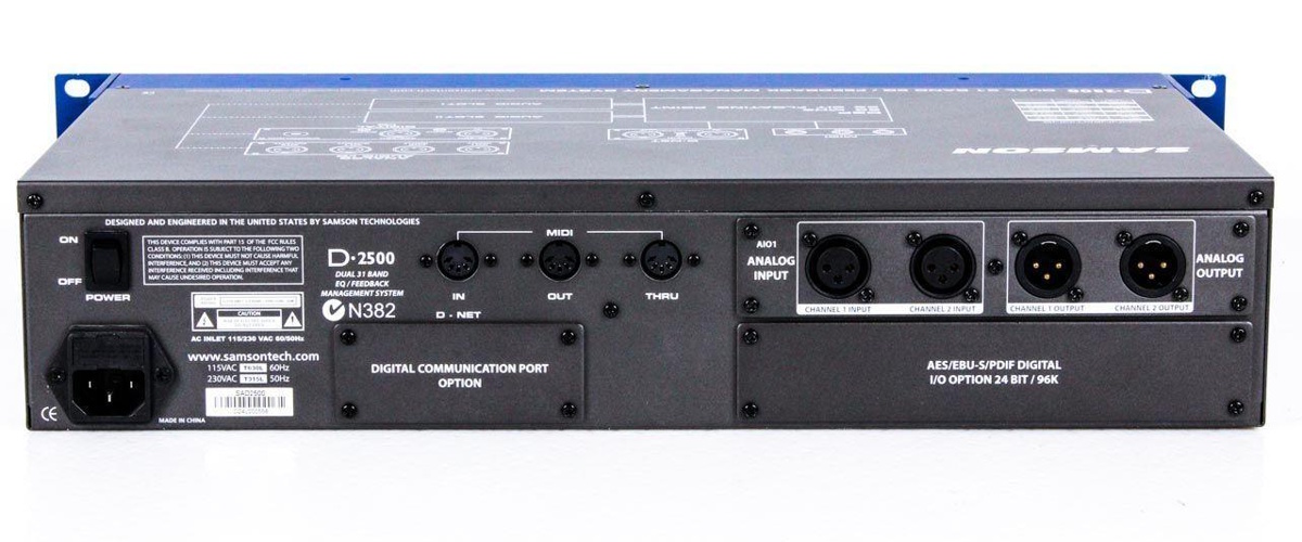 The beauty of the D-2500 Digital Graphic Equalizer is that it has 31 bands of real hands-on faders as well as a stereo master gain control with fader, programmable delay, high and low pass filters, noise gate, limiter, and enhancer. D-Class brings you the best digital performance with the function and feel of true analog equipment.